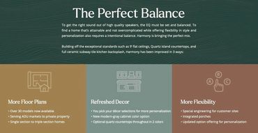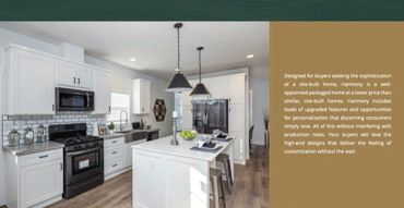 Designed for buyers who value the elegance of a site-built home, the Harmony offers a thoughtfully curated, well-appointed package at a more affordable price than comparable custom homes. Featuring a host of premium upgrades carefully selected by expert designers, Harmony is tailored to meet the needs of discerning homeowners.
